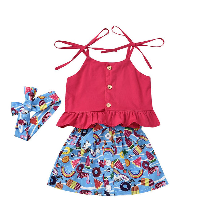 Suspender top cartoon cute fruit printed short skirt skirt skirt Headband