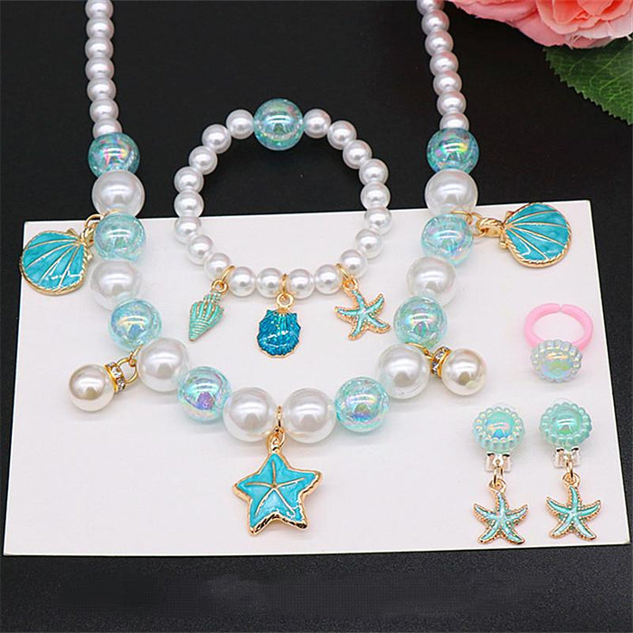 Children's Pearl Necklace Bracelet Set Shell Ocean Series