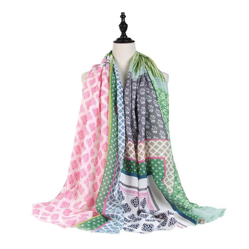 Satin Printed Contrast Stitched Scarf for Sun Protection and Warmth In Spring