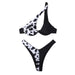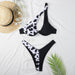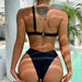 New Color Blocking Steel Ring Solid Color Printing Sexy Split Bikini