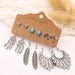 Vintage Long Tassel Leaf Feather Earring Set Jewelry