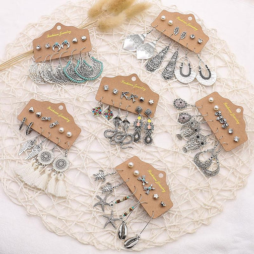 Boho Vintage Round Combo Set Earrings