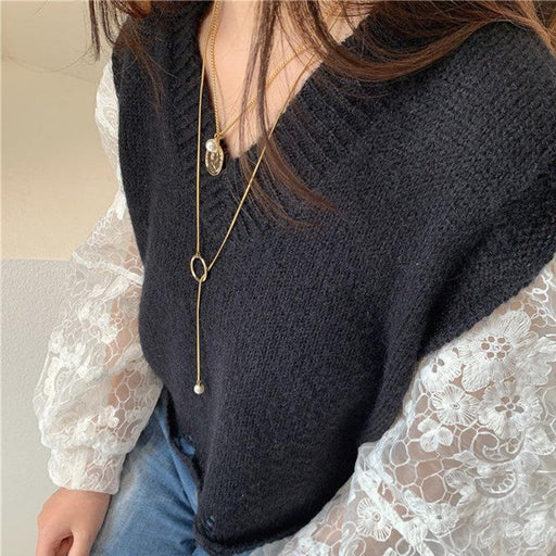 New Gold Color Necklace Double Layer Simple Women's Jewelry