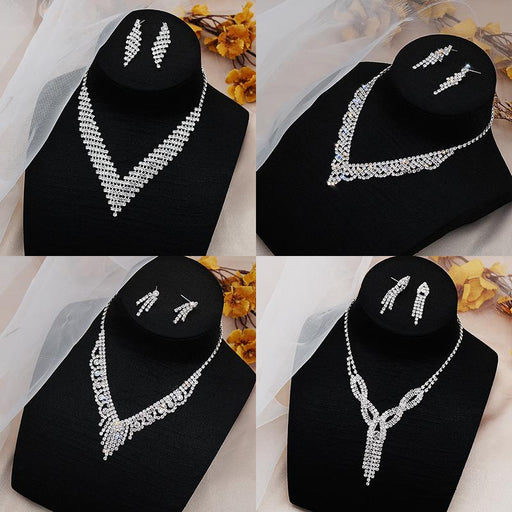 Zircon Rhinestone Necklace Earrings Jewelry Set