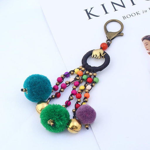 Bohemian Wool Ball Bell Pendant Keychains Bag Pendant
