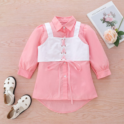 Solid color long sleeved shirt long dovetail coat vest Accessories top