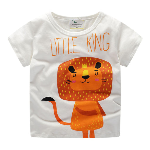 Little lion print round neck cartoon short sleeve T-shirt