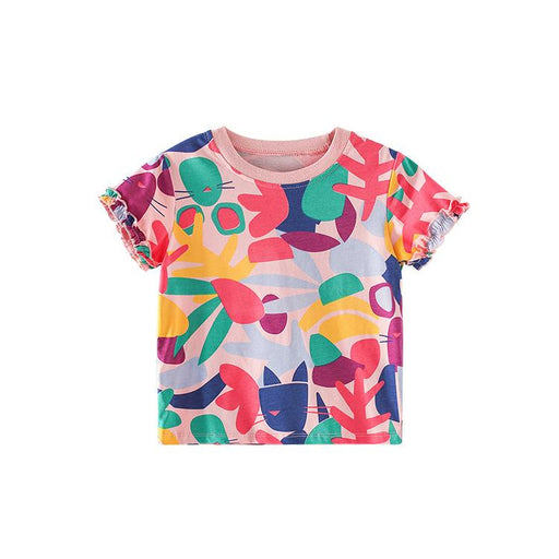 Girls' cartoon cotton short sleeve round neck girls' T-shirt