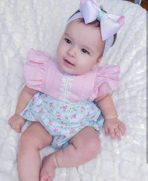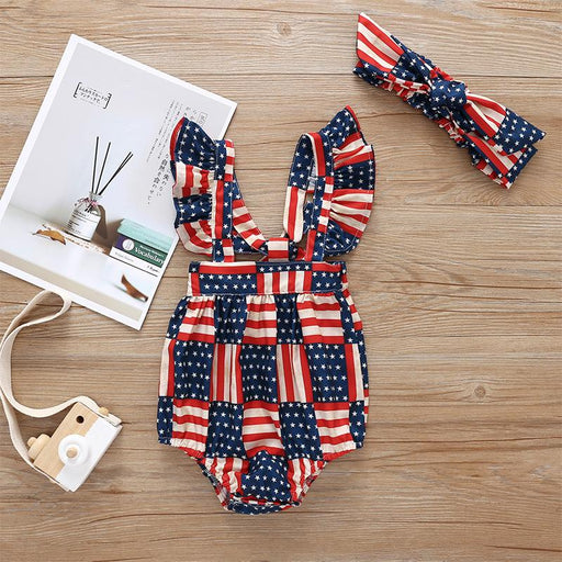 Lace sleeveless backless printed one-piece creeper suit three piece set + bow