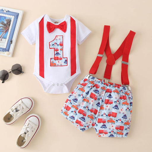 Pullover short sleeve strap cartoon printed shorts two piece set