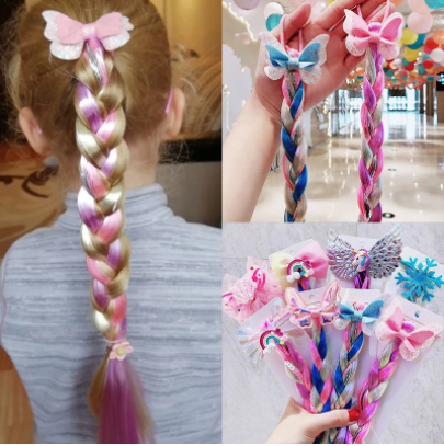 50X Cartoon Butterfly Colorful Braided Kids Ponytail Headband