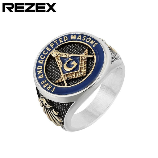 Personality Retro Masonic Logo Men's Titanium Steel Ring