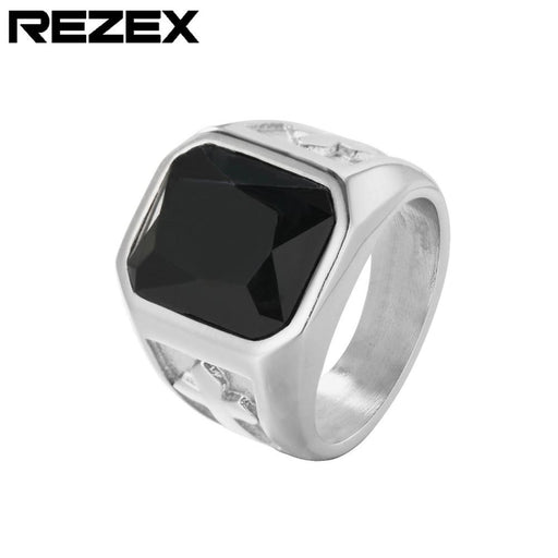 Personality Punk Cross Men's Titanium Steel Gem Ring Foreign Trade Jewelry