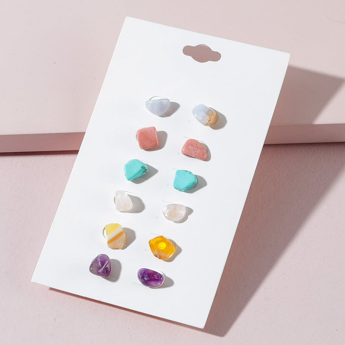 6 Pairs Multi Color Natural Crushed Stone Stud Earrings Set