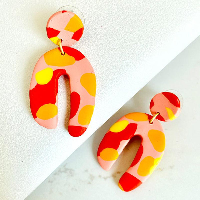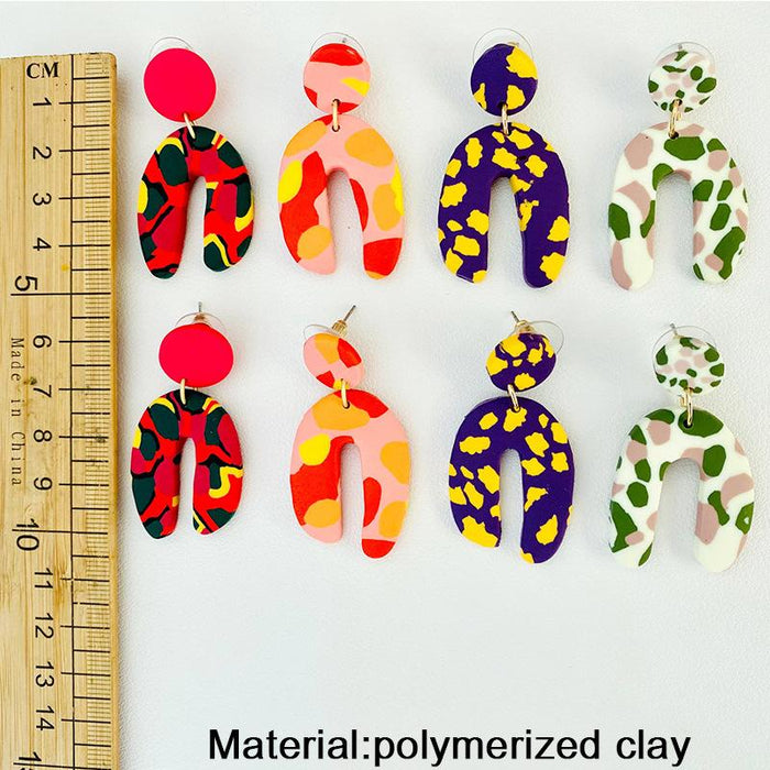 Leopard Soft Pottery Earrings Colorful Polymer Clay Earrings