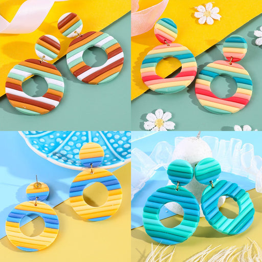 New Soft Pottery Earrings Geometric Multicolor Clay Earrings