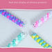 Color: Blue-purple-red, pink-white-blue, green-white, yellow-blue-white