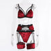 Women's Velvet Lingerie Sexy Lace Underwear Three-piece Set