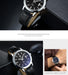 [Watch Features]: Multi-color and multi-selection, the blue glass surface is more translucent, and the mirror will appear bright blue under the light or on the side! The blue light of the illusion, the noble atmosphere! With a calendar, the head has 2 files (one gear to adjust the time, one gear to adjust the calendar). The soft strap has a good gloss and a comfortable texture. Life waterproof!