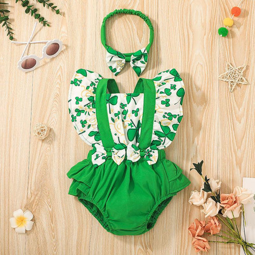 Baby Summer Green Leaves Jumpsuit Headband Set