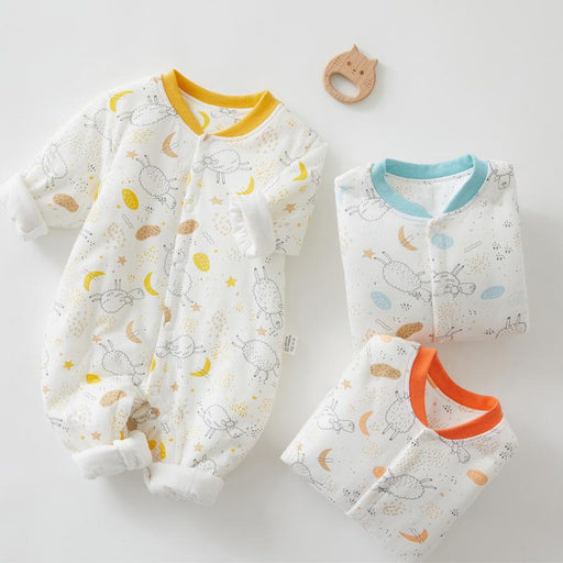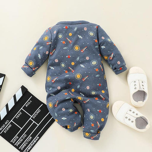 Summer Short Sleeved Printed Round Neck Jumpsuit for Baby Girls