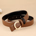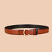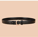 Women's leather belt can be worn on both sides with inner buckle and simple thin belt