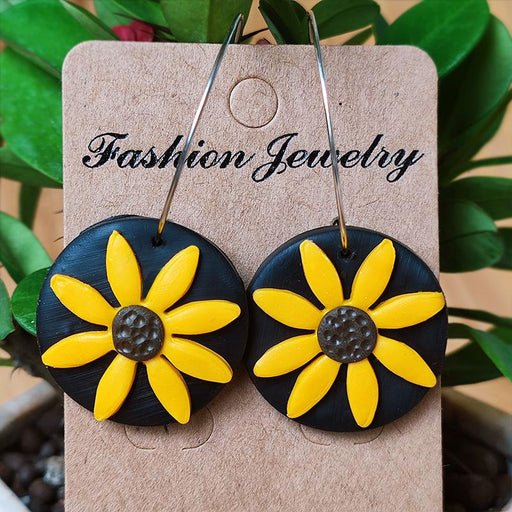 Spring and Summer Wind Sunflower Hand Made Flower Soft Pottery Earrings