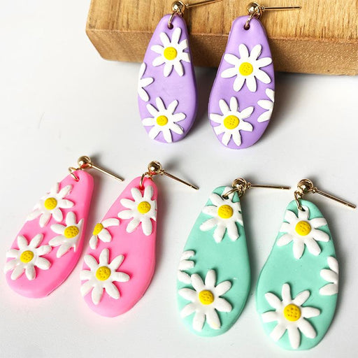 Taro Purple Ice Cake Color Daisy Flower Soft Pottery Earrings