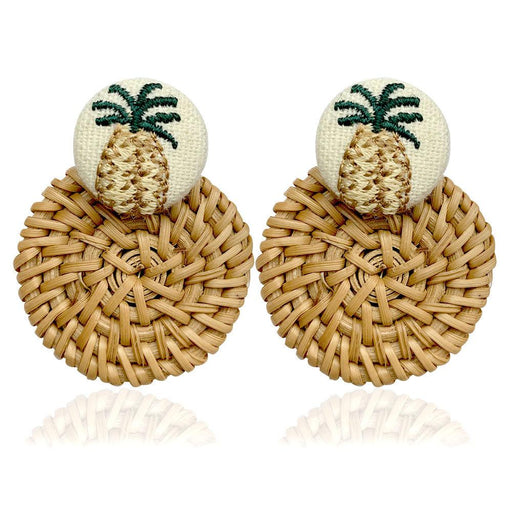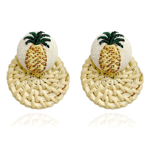 Popular Cloth Embroidery Pineapple Rattan Circle Earrings