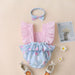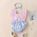 Lace sleeveless backless printed one-piece creeper suit three piece set + bow