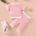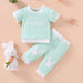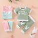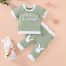 Letter print stitched short sleeve top stitched trousers set