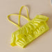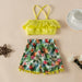 Suspender diagonal shoulder lotus leaf collar Blouse Top Green Flower tassel pants two-piece set