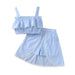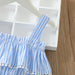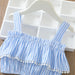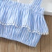 Suspender sky blue double layer tassel ball top striped skirt pants