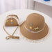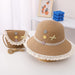 Trendy Three-color Button Children's Lace Straw Hat Bag Set