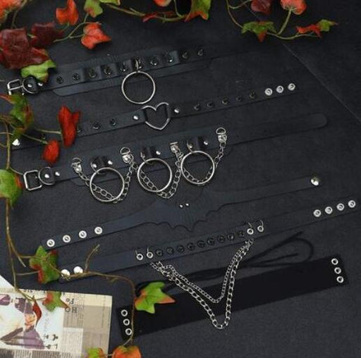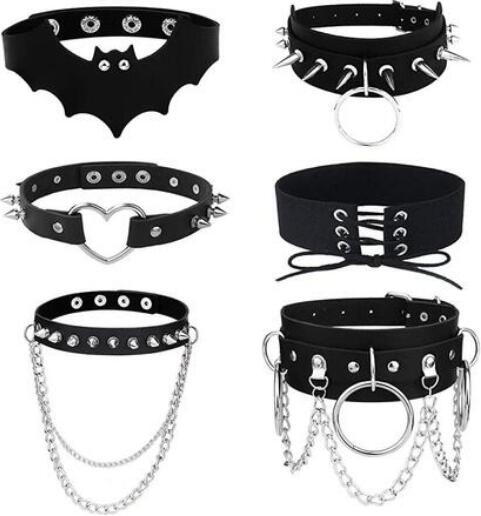 In stockYou'll get in tatal 6 pcs Goth Collar in Different Styles ,Like O-ring Chokers,Love Heart,Circle,Bat Chain Necklace,Choker Collar,10 pieces per sty...