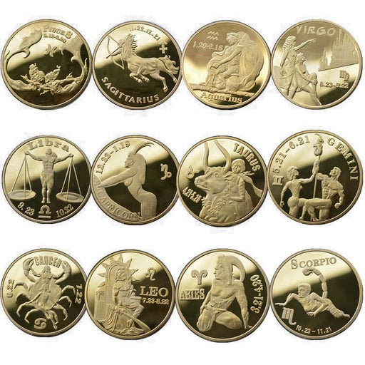 3 Sets Embossed 12 zodiac Gold Plated Commemorative Coins