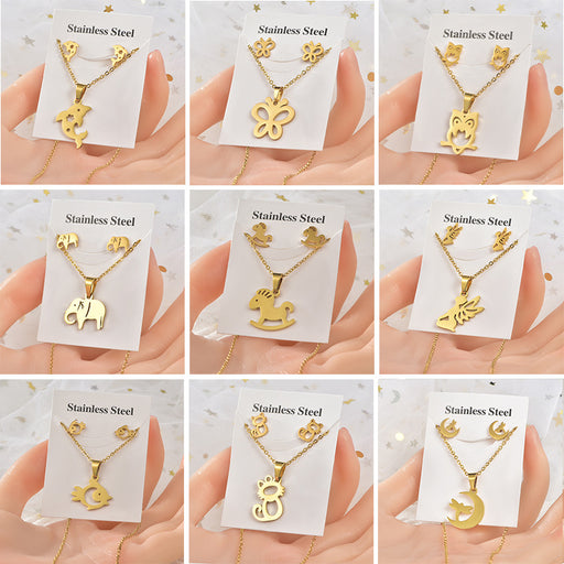 In stockGold Plated Steel Necklaces and Ear studs,180 sets,each style send 20 sets.Gold clavicle chain ins necklace earrings jewelry set: Choose this set o...