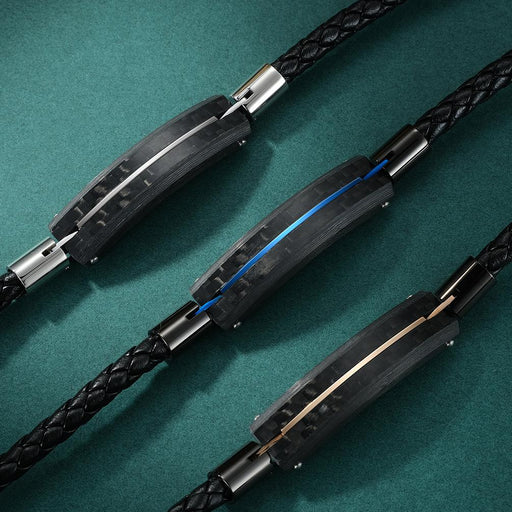 Solid Carbon Fiber Leather Titanium Steel Bracelet Jewelry