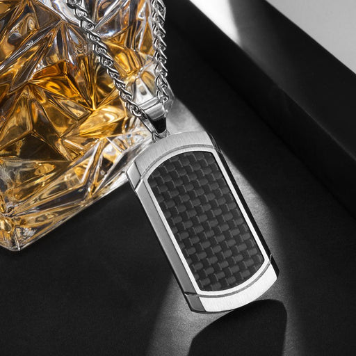 Men's Solid Stainless Steel Carbon Fiber Pendant Necklace