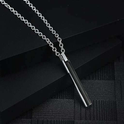Fashion Titanium Steel Concave Cylindrical Pendant Necklace