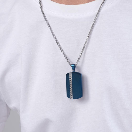 Brushed Plaid Military Brand Stainless Steel Pendant Necklace