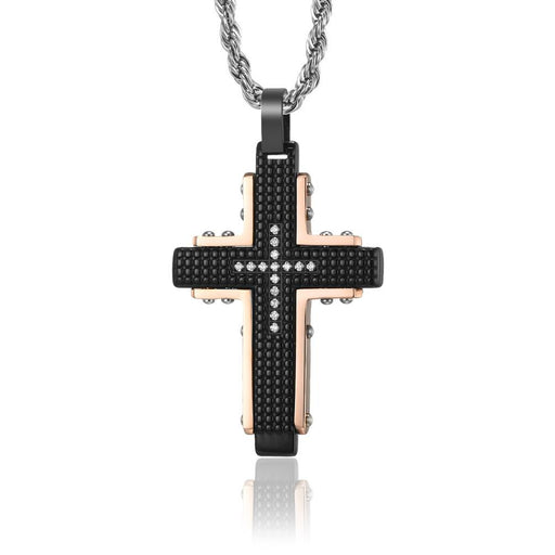 Titanium Steel Checkered Two-color Cross Pendant Necklace
