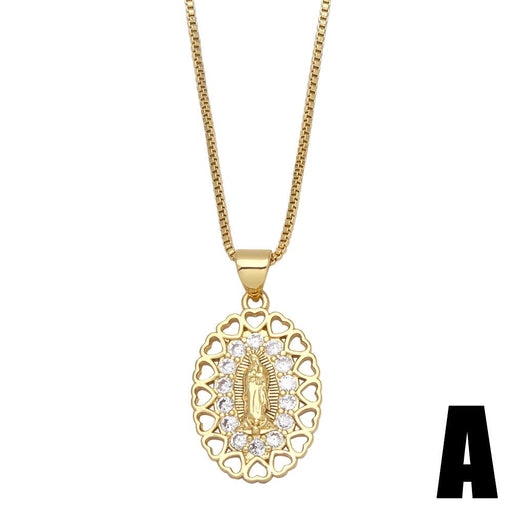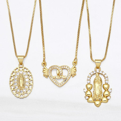 Virgin Mary of Love Pendant with Diamond Zircon Necklace