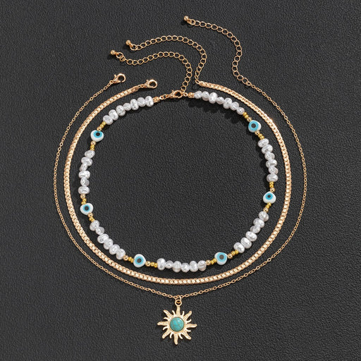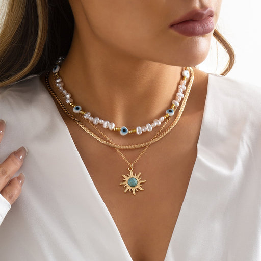 Retro Sun Turquoise Pendant Contrast Color Personalized Eye Necklace