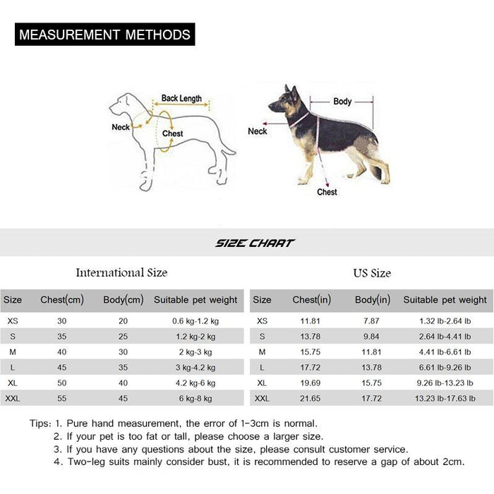 2. Two-legged clothing mainly considers the chest, please refer to the size chart carefully, do not choose according to past experience, so as to avoid errors.