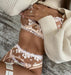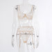 Women Flower Embroidered Sexy Lingerie Three Piece Set