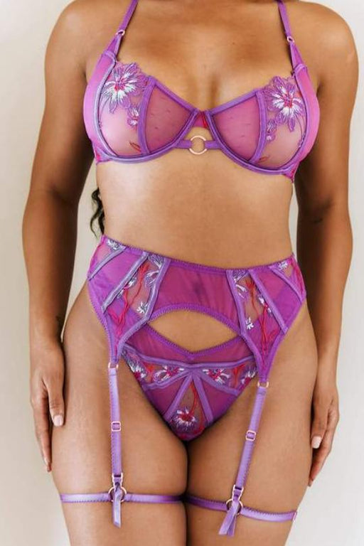 Sexy Lingerie Women Embroidered Mesh Garter Underwear Set