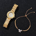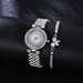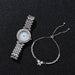 Full Rhinestone Woman's Watch Bracelet Set Luxury Silver Ladies Wristwatch Flower Pattern