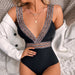 Lace V-neck Bikini High Waist One-piece Conservative Backless Swimsuit