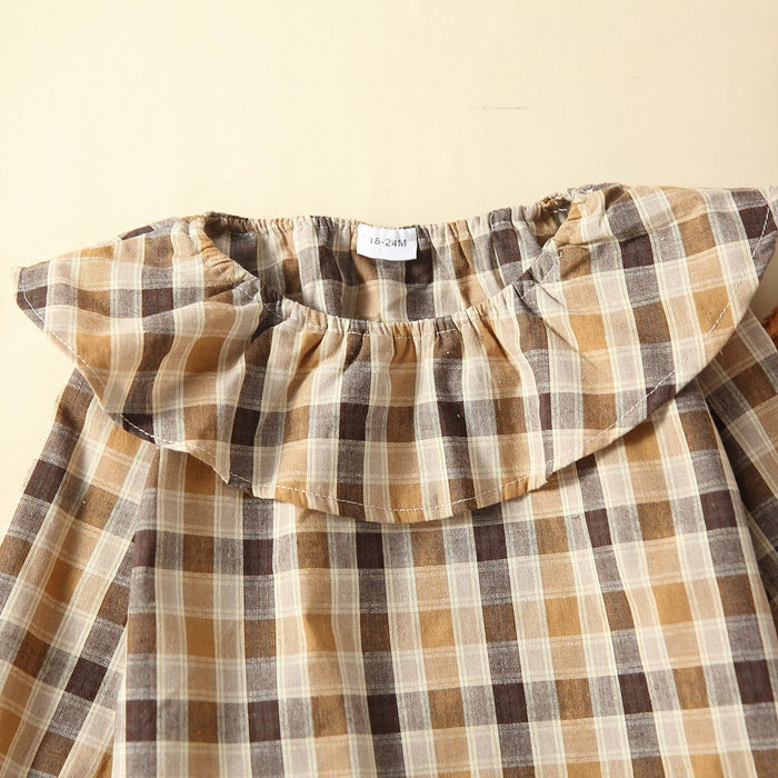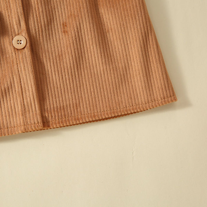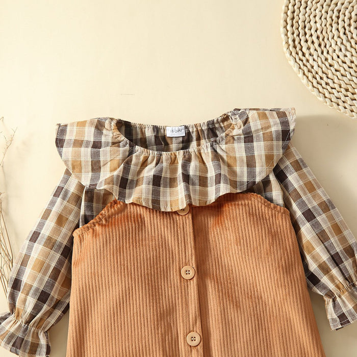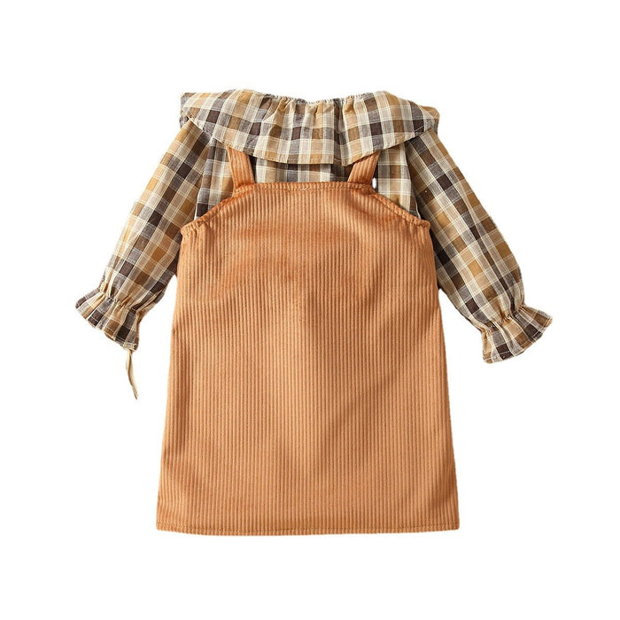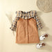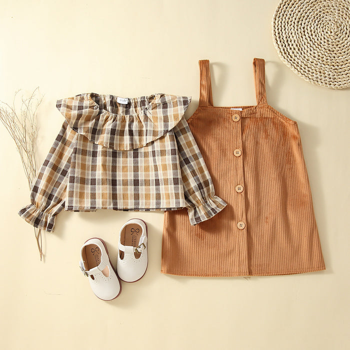 Children's Plaid Pullover corduroy strap skirt two piece set